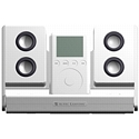 "A highly efficient amplifier powers four full-range micro drivers to deliver a full spectrum of pure, distinct sound, while the revolutionary MaxxBass technology allows listeners to enjoy deep bass without lugging large speakers around. Best of all, connectivity is as easy as placing your iPod into the built-in dock or connecting it through the auxiliary port."